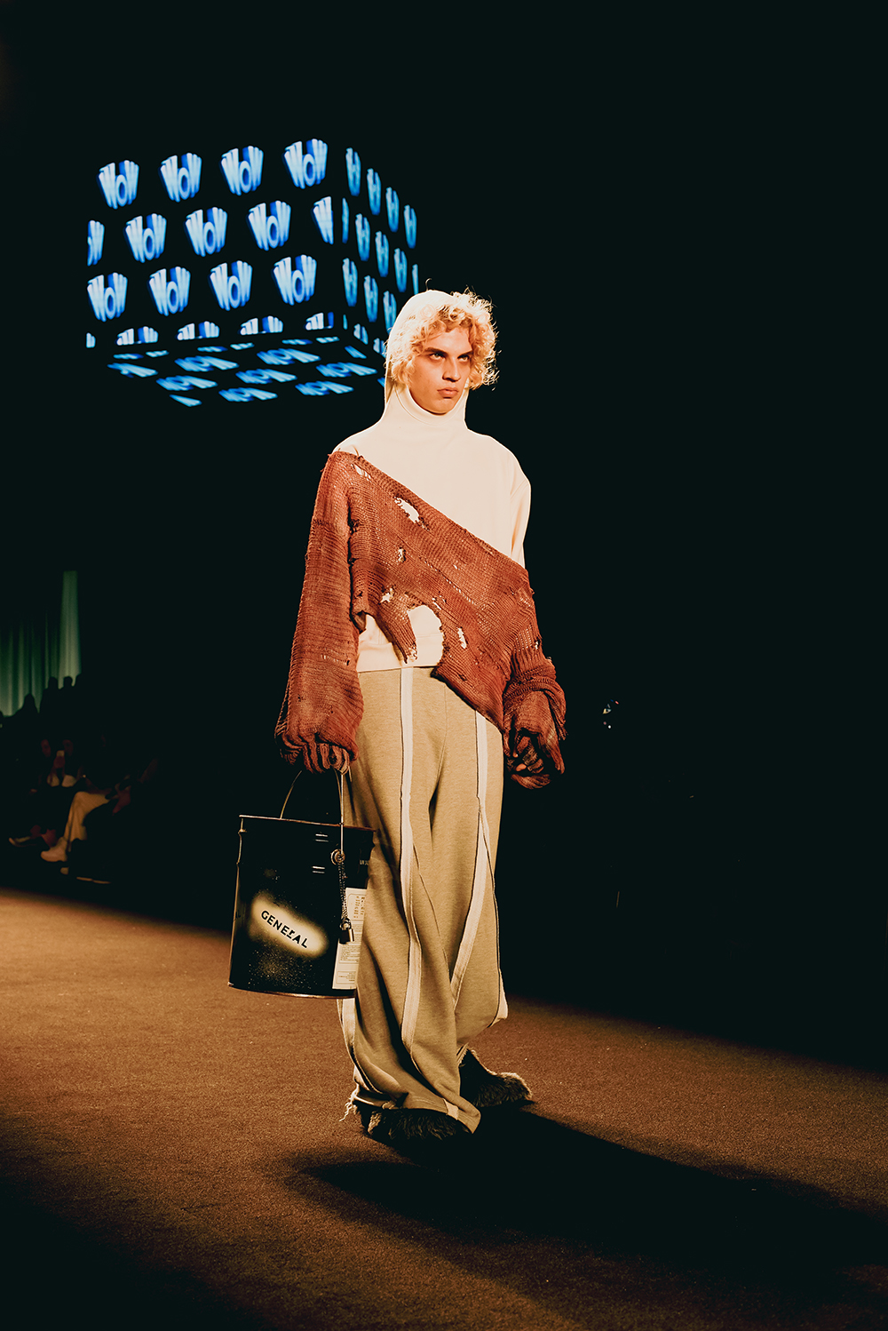 Buscando romper con lo que durante años había sido la estética tradicional de muchas marcas, GENErAL, bajo la dirección creativa de Nebulosa, apostó por hormas disruptivas, intervenciones textiles, funciones inesperadas en las prendas y un uso potente de la pintura, dejando clara su posición: el arte y la moda no están separados, se cruzan, conviven y se potencian mutuamente.