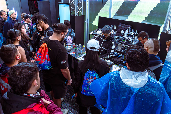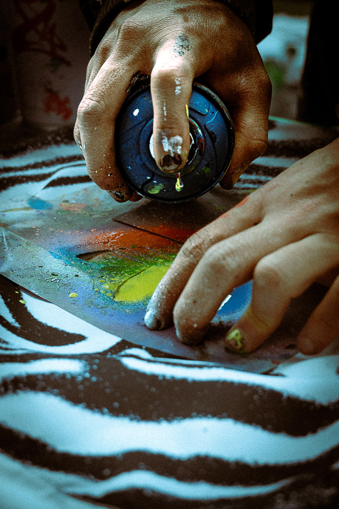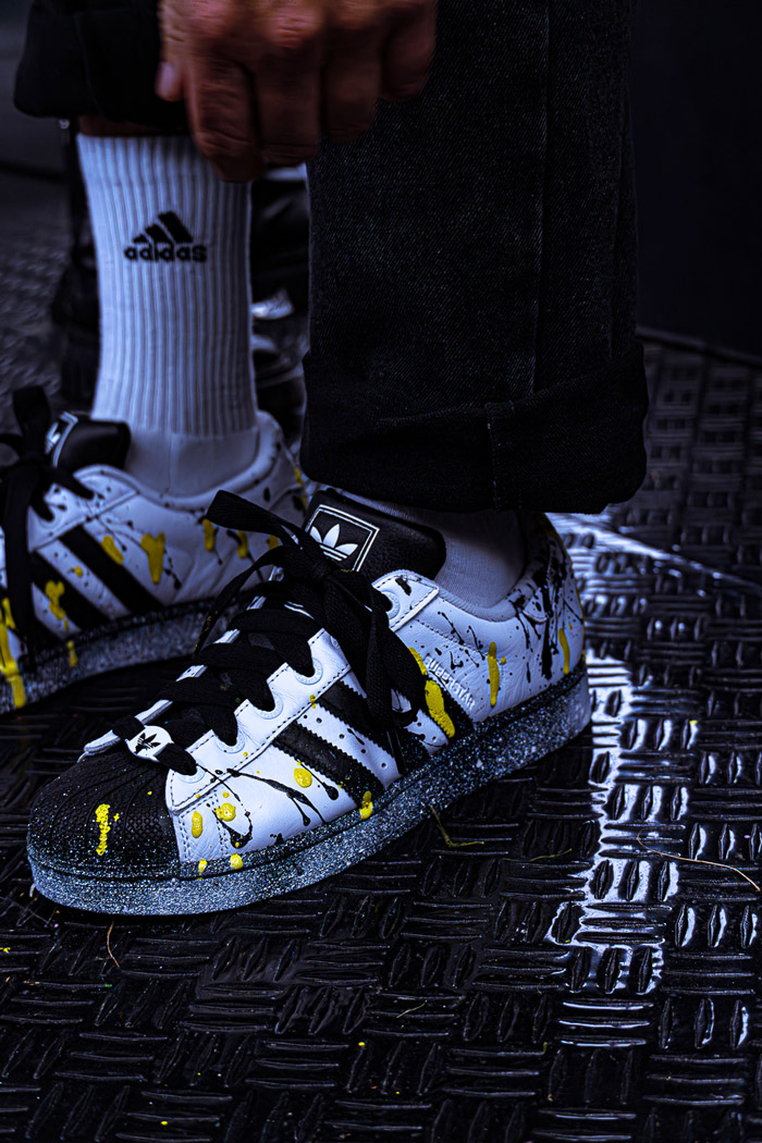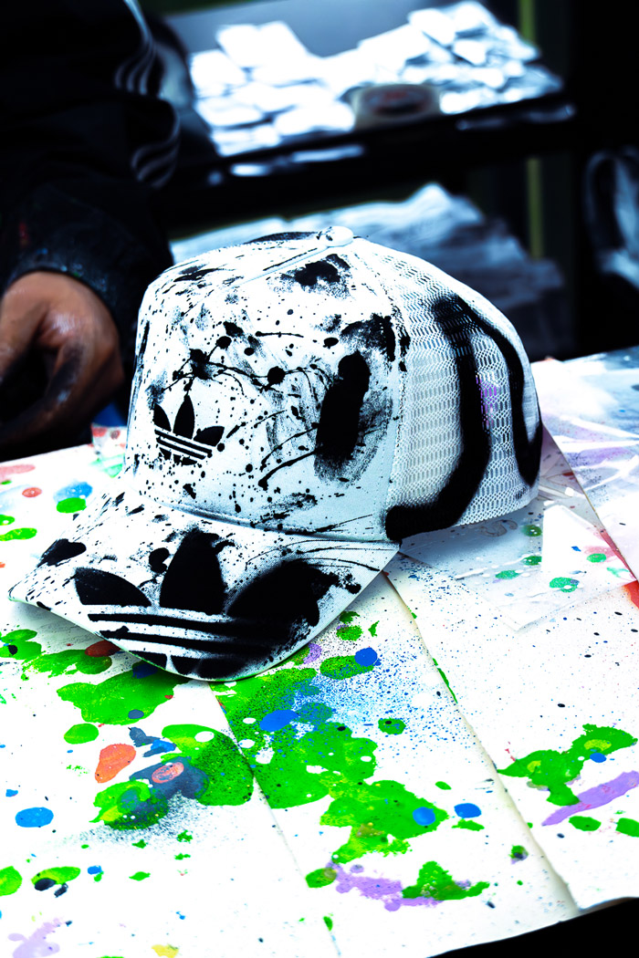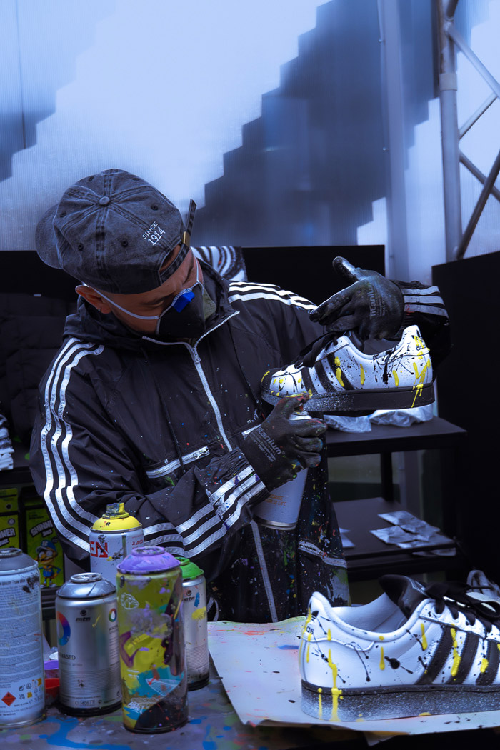 A partir de técnicas como el desgaste, la pintura y los cortes manuales, también se diseñó un par de Vans 1/1, usados por el modelo en la pasarela de clausura del Bogotá Fashion Week, en su sección streetwear.