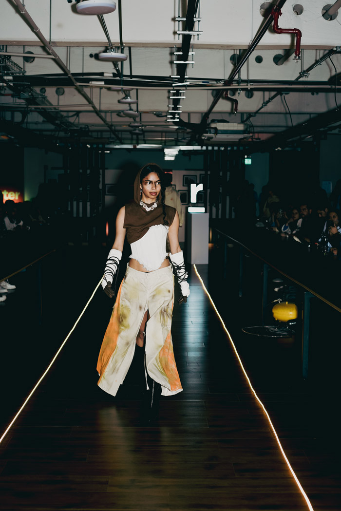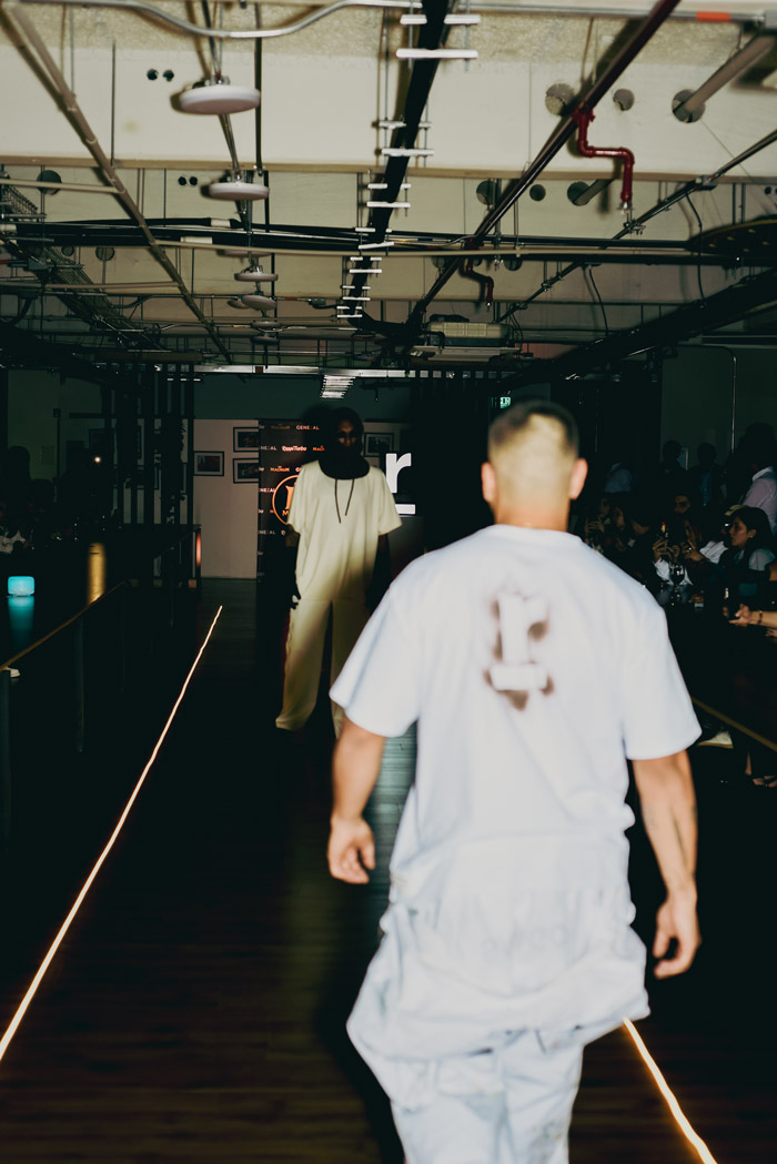 El desfile se realizó en alianza con Rappi, la primera startup unicornio de Colombia, dando lugar a un cruce entre industrias, visiones creativas y lenguajes contemporáneos. La pasarela tuvo lugar en las oficinas de la empresa, reforzando ese contraste entre lo industrial, lo corporativo y lo artístico.