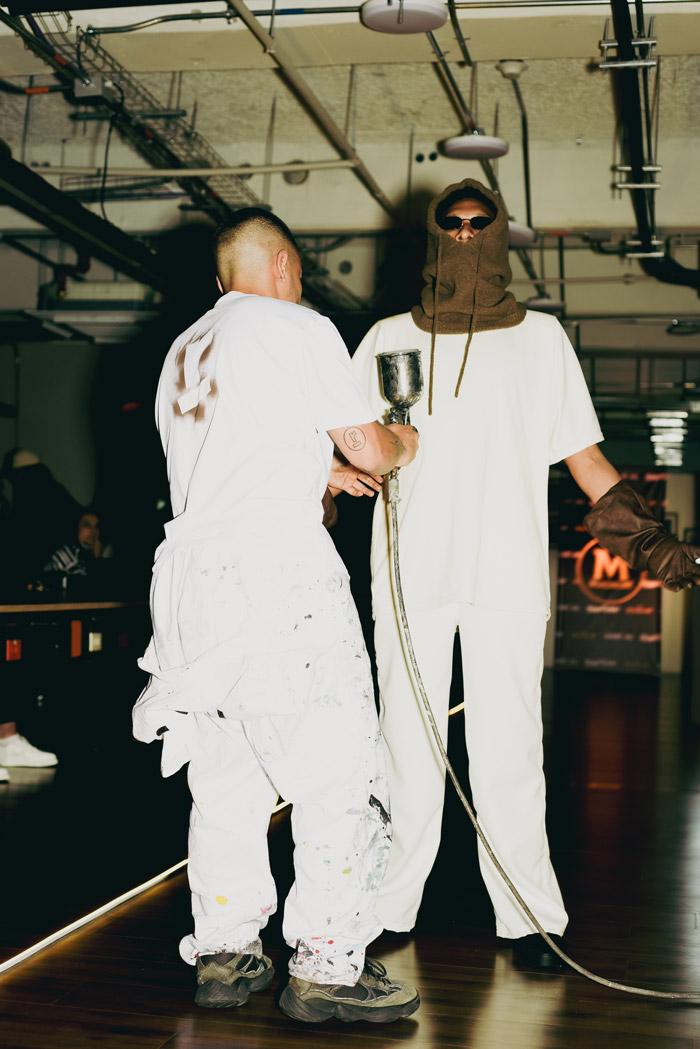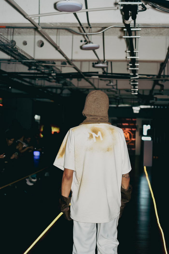 HU$TLE fue una colección nacida del fuego interno. Inspirada en el trabajo duro, la ambición y el deseo inquebrantable de superarse, esta propuesta puso en escena disciplinas que exigen cuerpo, mente y alma: el boxeo, la industria automotriz y la pintura.