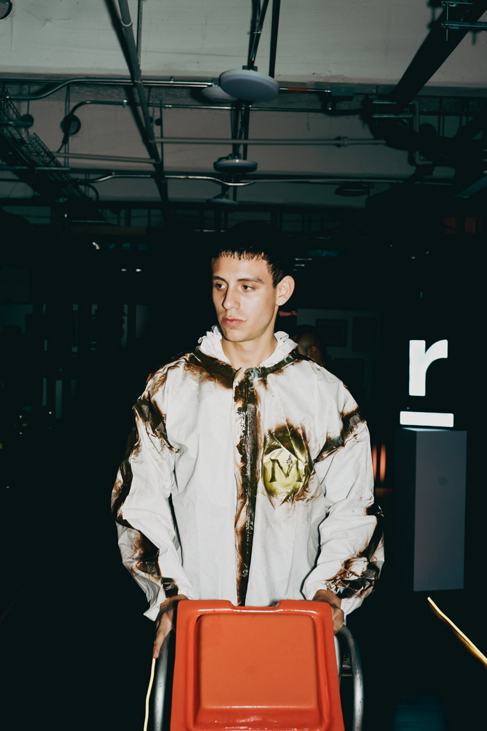 El uso intencional y excesivo del desgaste, los parches en drill y la pintura fueron la base de construcción de esta propuesta. También se incluyeron pantalones y hoodies con cremalleras que permitían quitar y poner ciertas partes de la prenda, dándole versatilidad y dinamismo.
