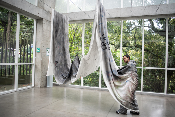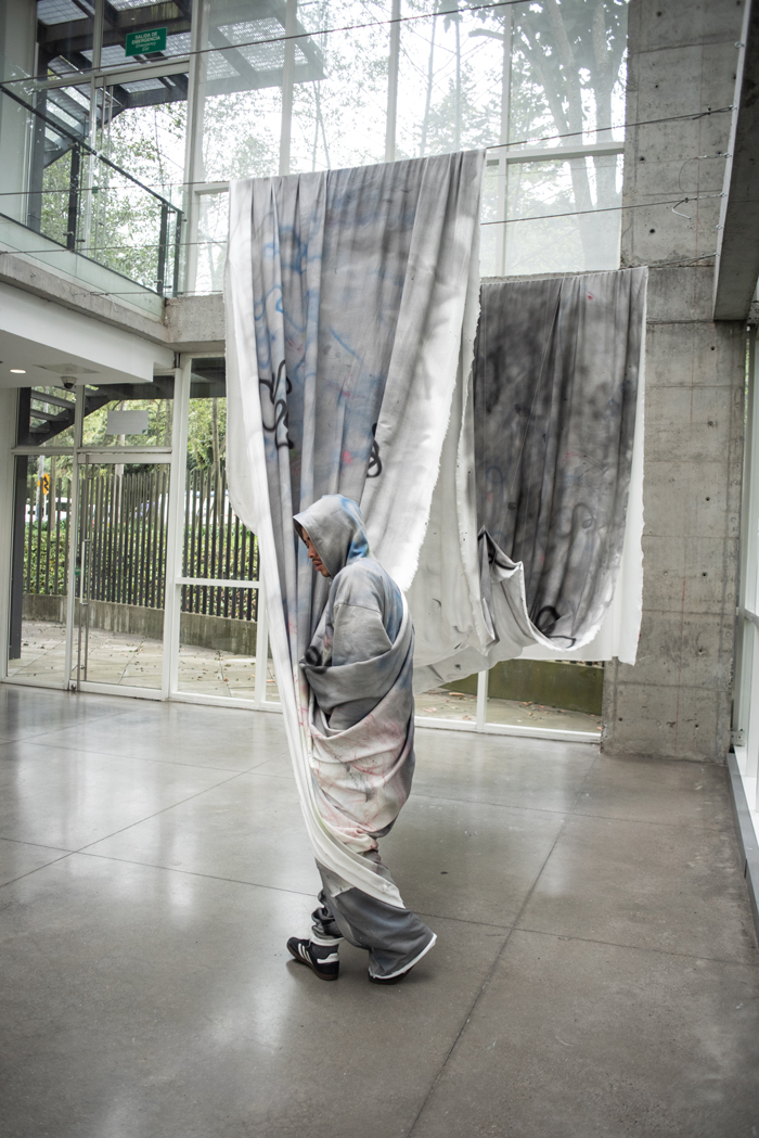 Tipo de obra: Instalación textil + prenda (wearable art)